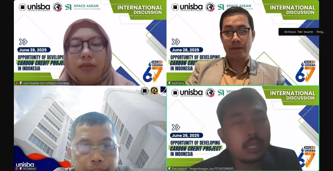 INFOFILANTROPI.COM, BANDUNG (KOMHUMAS) – Universitas Islam Bandung (Unisba) menyelenggarakan International Discussion bertajuk Opportunity of Developing Carbon Credits Project in Indonesia pada Sabtu, 28 Juni 2025. Kegiatan ini dilaksanakan secara daring melalui Zoom Meeting, dan menjadi salah satu rangkaian peringatan Milad ke-67 Unisba.