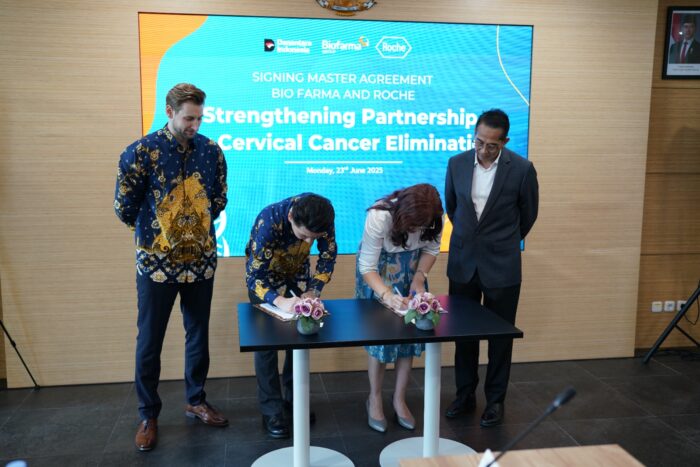 INFOFILANTROPI.COM, JAKARTA (23 Juni 2025) — PT Bio Farma (Persero), BUMN farmasi terbesar di Indonesia, bersama PT Roche Indonesia (Divisi Diagnostik), menandatangani Master of Cooperation Agreement untuk pengembangan alat kesehatan produksi lokal – deteksi kanker serviks berbasis HPV DNA dan memperluas deteksi kanker serviks lewat pendekatan model hub and spoke dengan instrumen sistem otomasi performa tinggi dan sistem PCR manual. Pendekatan ini diharapkan dapat meningkatkan kapasitas dan aksesibilitas Masyarakat terhadap pengujian dan merupakan dukungan konkret terhadap Rencana Aksi Nasional (RAN) Eliminasi Kanker Serviks yang dicanangkan oleh Kementerian Kesehatan Republik Indonesia.