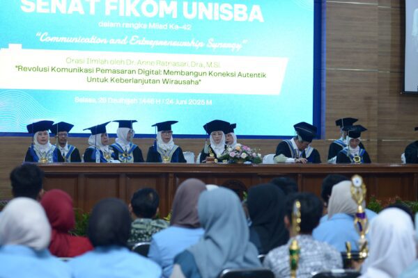 INFOFILANTROPI.COM, BANDUNG — Fakultas Ilmu Komunikasi (Fikom) Universitas Islam Bandung (Unisba) memperingati hari jadinya yang ke-42 melalui prosesi Milad yang digelar di Aula Unisba pada Selasa, 24 Juni 2025. Kegiatan ini menjadi momentum refleksi dan apresiasi atas perjalanan panjang Fikom sejak resmi dikukuhkan pada 7 Juni 1983 sebagai lembaga penyelenggara Program Sarjana Ilmu Komunikasi.