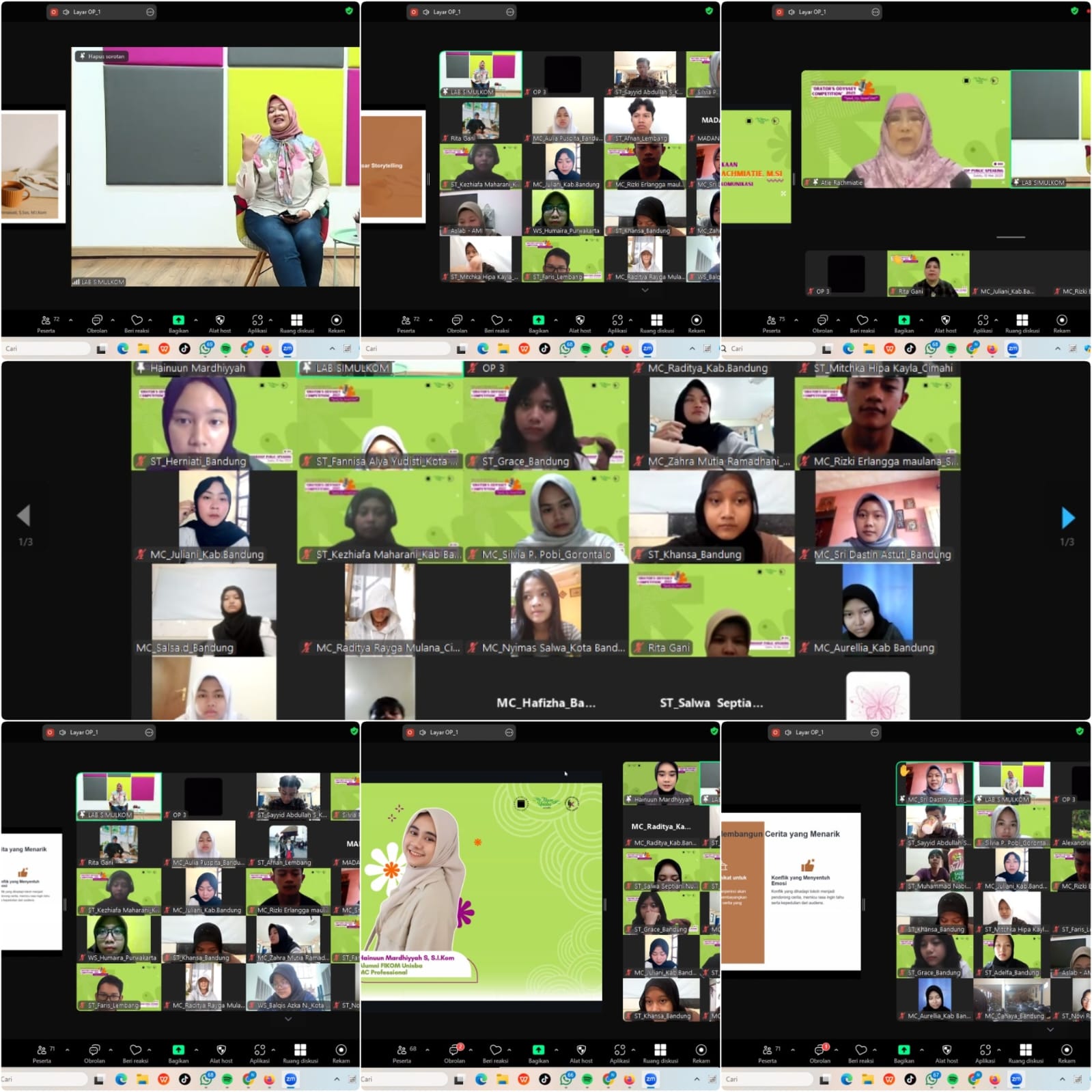 Sementara Teh Hainun yang juga merupakan alumni asisten laboratorium Simulasi Fikom Unisba, dan kerap menjadi MC professional di berbagai acara memotivasi para peserta  bahwa untuk siapa saja bisa menjadi MC dan bisa berbicara di depan public dengan baik.