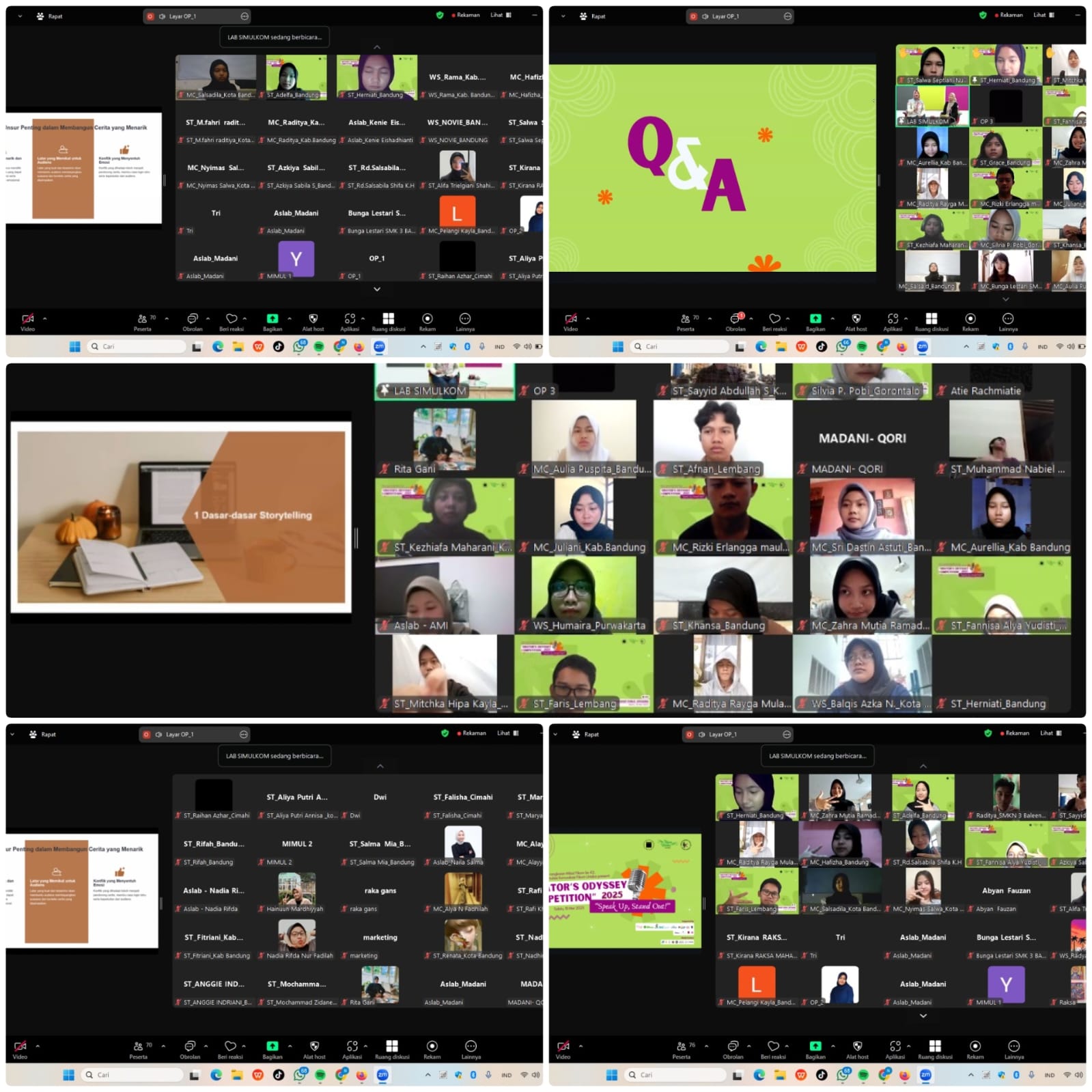 Disesi akhir, para peserta workshop juga dibimbing oleh para asisten lab simulkom untuk persiapan lomba, beberapa peserta yang dikelompokkan dalam satu “ruangan” zoom ini bisa mendiskusikan berbagai naskah yang akan dilombakan nanti, sehingga peserta bisa lebih maksimal ketika membuat videonya.