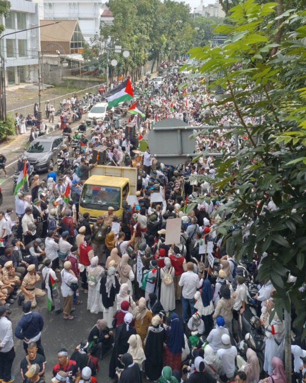 Aksi ini turut dihadiri oleh sejumlah tokoh masyarakat, di antaranya mantan Gubernur Jawa Barat Ahmad Heryawan serta Pimpinan Pondok Pesantren Daarut Tauhiid, KH. Abdullah Gymnastiar (Aa Gym). Keduanya menyampaikan pesan-pesan moral dan spiritual kepada para peserta aksi untuk terus menyuarakan keadilan dan kemanusiaan bagi Palestina.