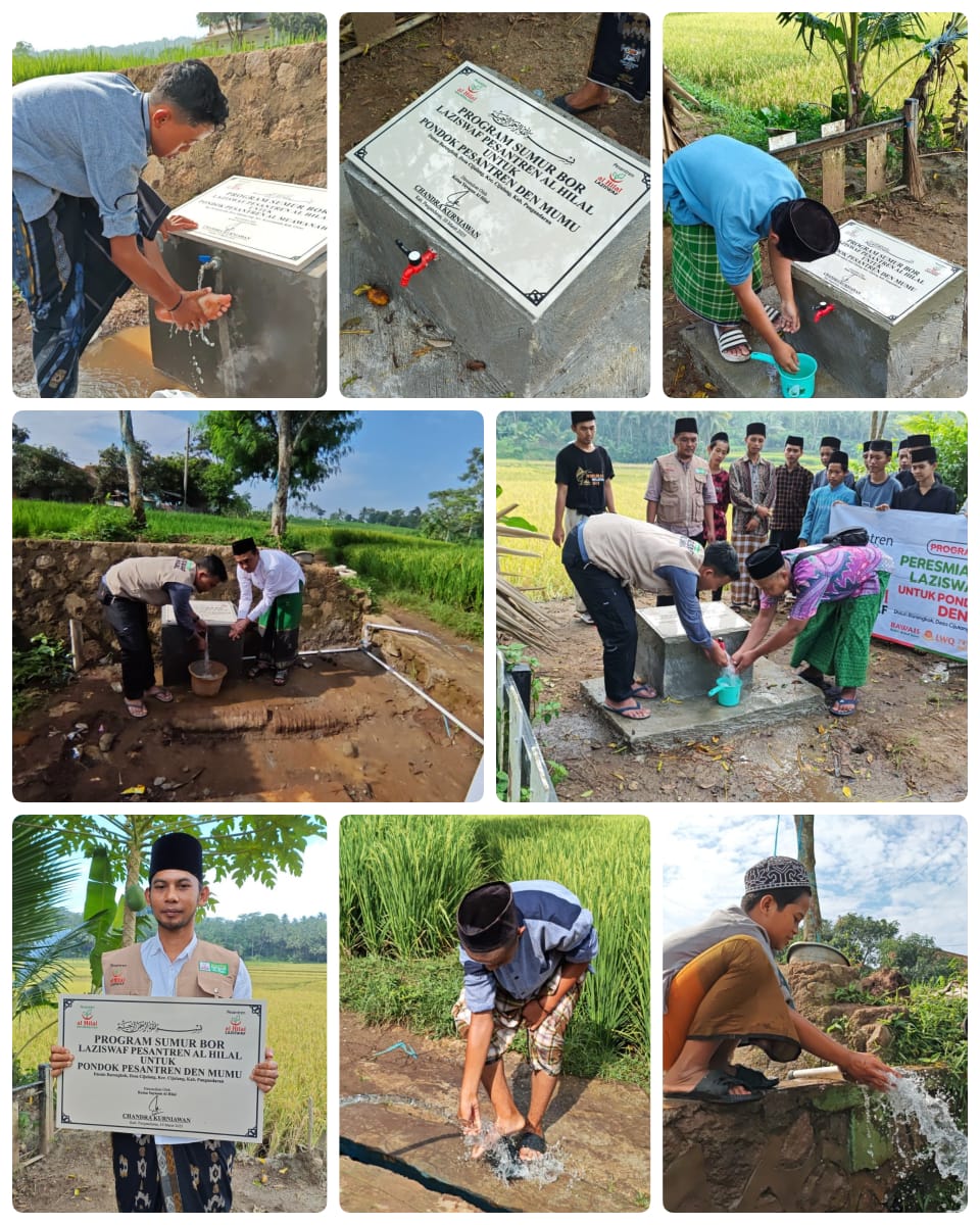 Sementara itu, di Pondok Pesantren Den Mumu, Kabupaten Pangandaran, sumur bor sedalam 60 meter telah diresmikan setelah proses pengeboran sejak 25 Februari 2025. Sebelum adanya sumur ini, para santri terpaksa menggunakan air sungai yang keruh dan tidak higienis untuk keperluan sehari-hari.
