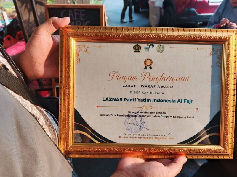 INFOFILANTROPI.COM, JAKARTA — Kementerian Agama Republik Indonesia memberikan piagam penghargaan kepada sejumlah Lembaga Amil Zakat (LAZ) atas kontribusinya dalam program nasional Kampung Zakat. Salah satu penghargaan tertinggi diberikan kepada Lembaga Amil Zakat Nasional Panti Yatim Indonesia Al Fajr (Laznas PYI) sebagai LAZ dengan kontribusi terbanyak dalam mendukung program tersebut.