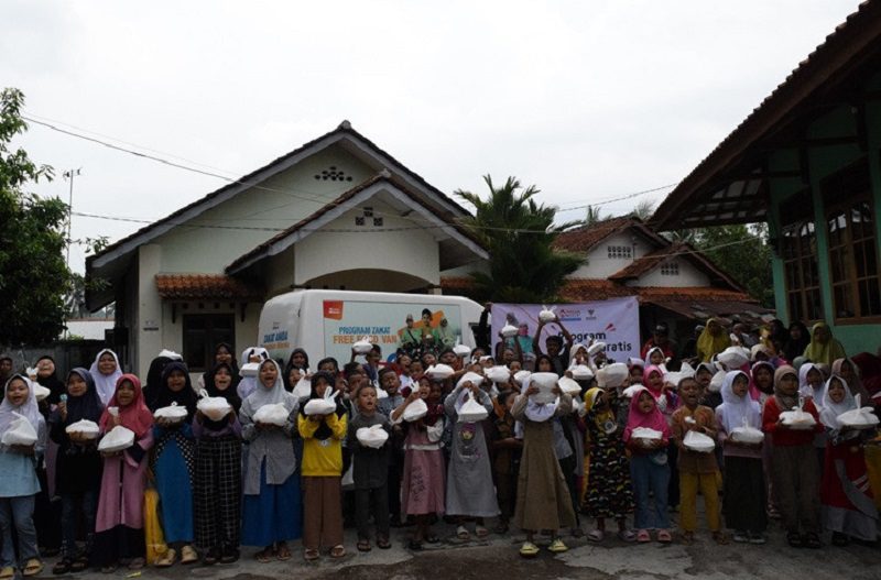 Mizan Amanah Bagikan Tas dan Makanan Gratis di Cikadu Banjar
