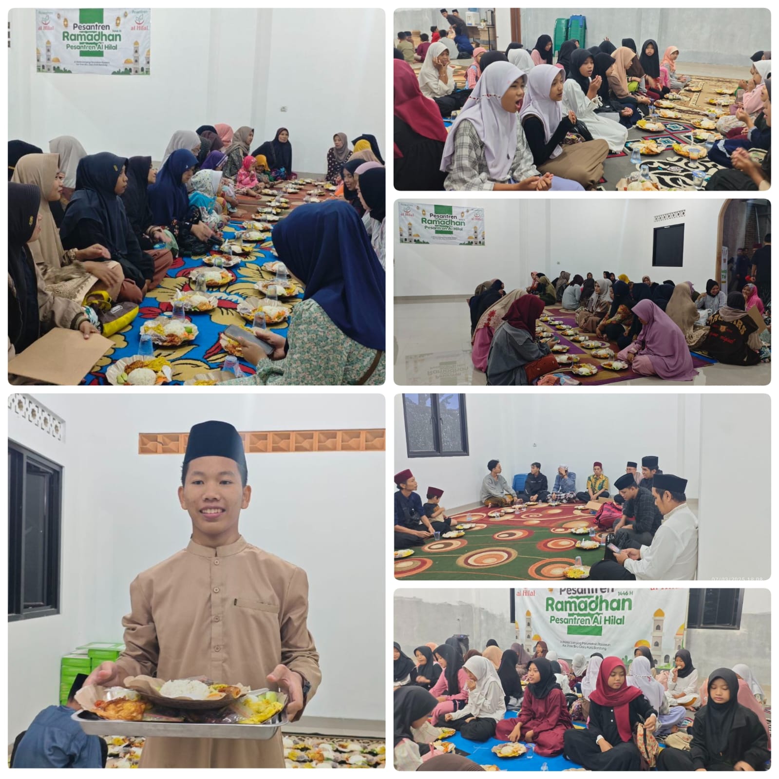 Setelah menjalani kegiatan Pesantren Ramadhan, para santri pun bersiap menyambut waktu berbuka, bersama dengan ini Masyarakat sekitar pun mulai berdatangan ke lokasi. Hidangan berbuka yang telah disiapkan dari sedekah para dermawan pun mulai dibagikan. Saat azan Maghrib berkumandang, para penerima manfaat pun serentak menikmati takjil dan makanan yang tersaji dengan penuh rasa syukur.