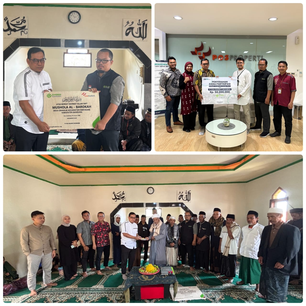 Sebagai wujud komitmen dalam aksi sosial, PT Pos Properti Indonesia menyalurkan bantuan kemanusiaan sebesar Rp53.460.000 melalui Sinergi Foundation. Dana yang berasal dari kontribusi perusahaan serta sumbangan karyawan tersebut kemudian dialokasikan untuk pembangunan Mushola Al-Barokah di Desa Cihawuk.