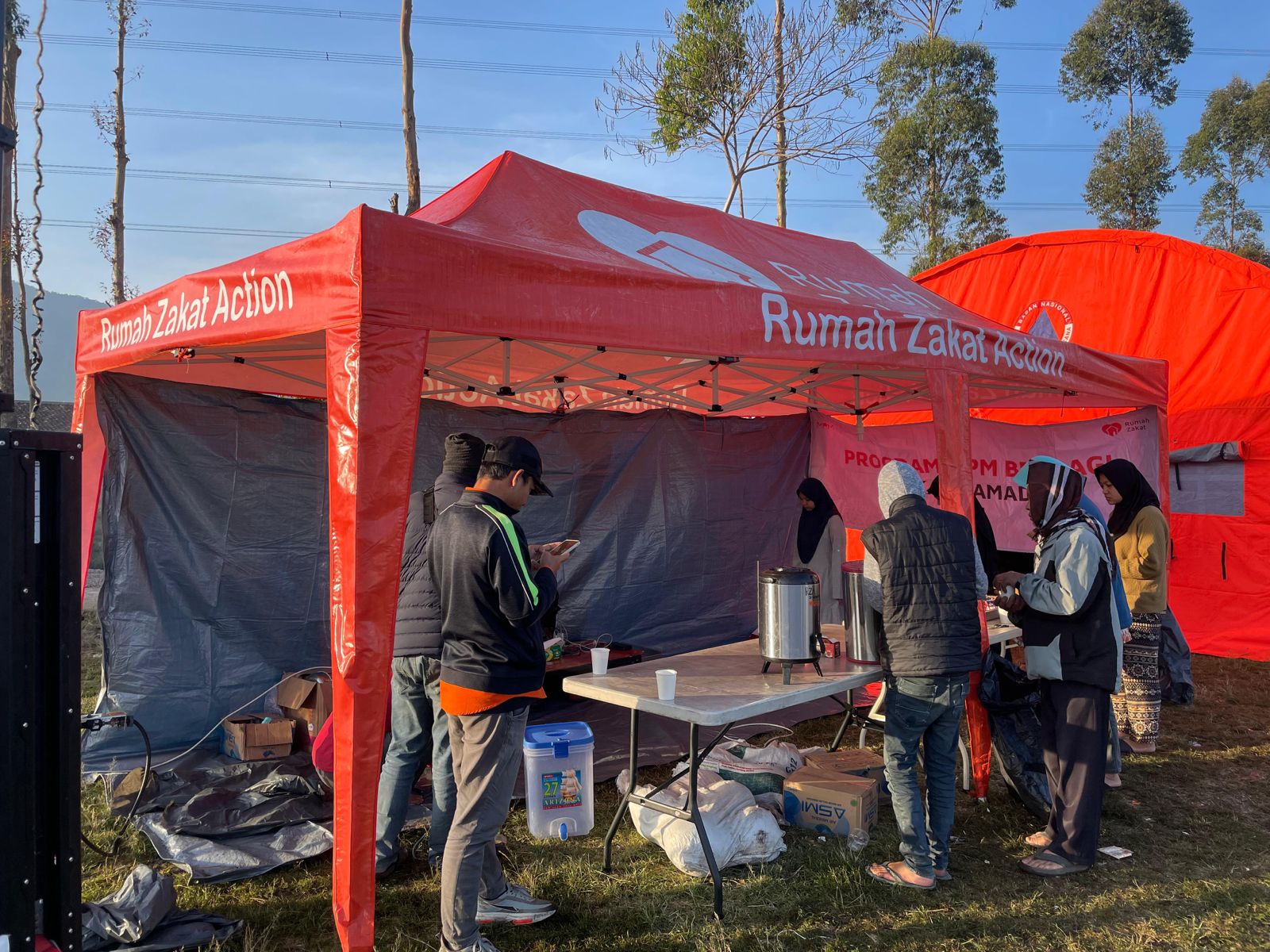 “Udara malam hari di pengungsian bisa mencapai 12 derajat Celsius pada pukul 2.00 dini hari. Untuk membantu menghangatkan tubuh para penyintas, maka kami salurkan minuman hangat dan juga selimut,” ujar Area Manager Rumah Zakat Jawa Barat, Encang Sukirman.