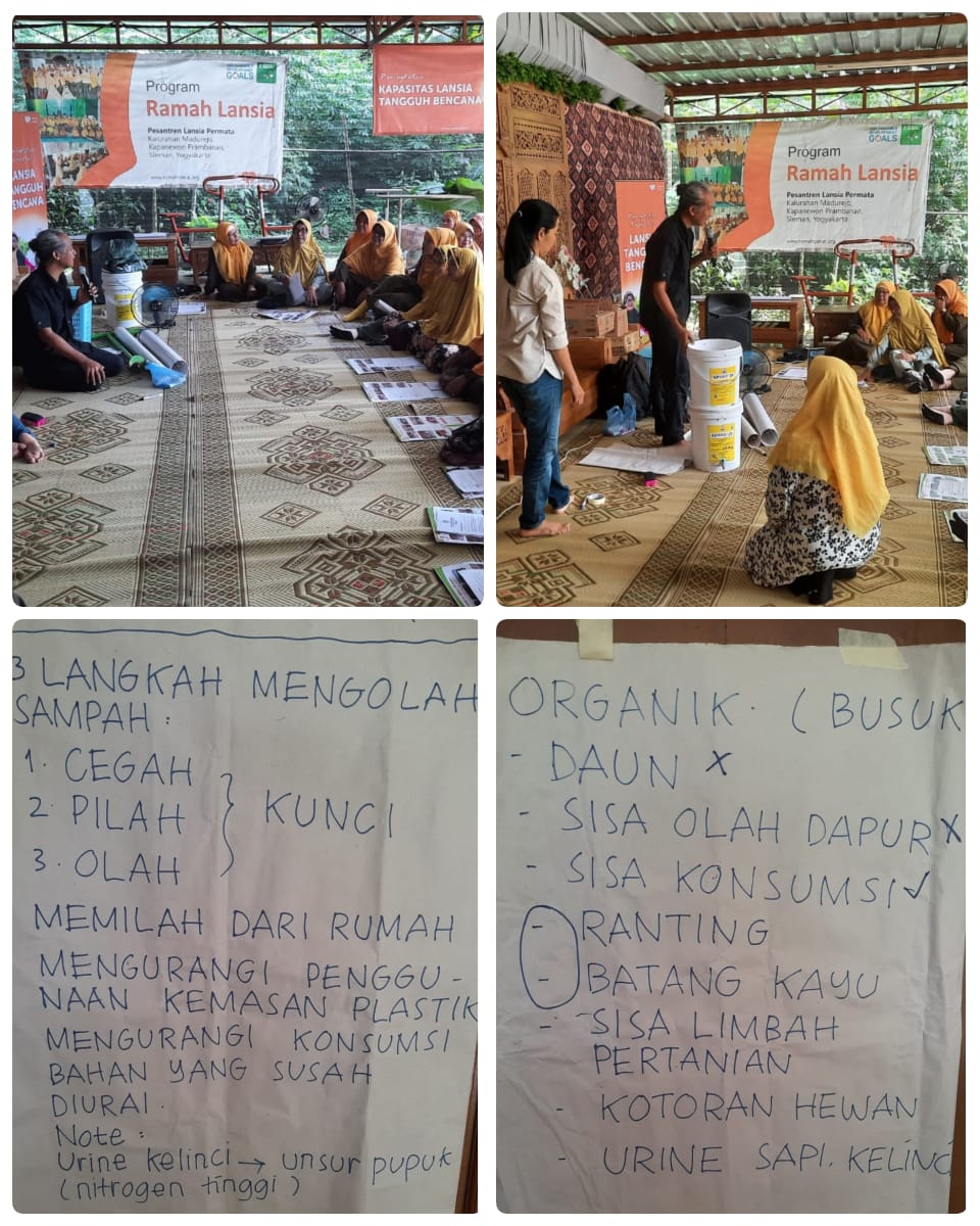 Berangkat dari berbagai persoalan di atas Rumah Zakat dengan program lansia tangguh bencana menghadirkan rangkaian kegiatan peningkatan kapasitas untuk para lansia di Komunitas Pesantren Lansia Permata yang khusus melatih para eyang lansia untuk mengolah sampah rumah tangga yg menyumbang 60 persen dari total sampah di Yogyakarta.